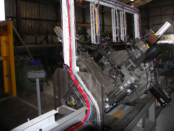 Pour cette machine nous avons pris en charge l’étude et la réalisation complète de l’automatisme. L’analyse fonctionnelle réalisée en collaboration avec notre client a été essentielle, elle a permis de définir les différents modes permettant à cette machine de réaliser aussi bien des produits standards que des produits spéciaux.
