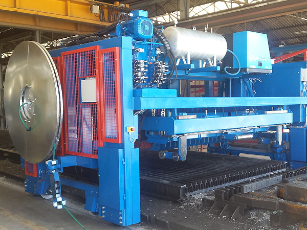 Cette machine a pour fonction de nettoyer les bancs sur lesquels seront coulés des éléments en béton précontraint. Elle se déplace sur des rails et est entièrement pilotée à l'aide d’une radiocommande personnalisée. Afin d’assurer une disponibilité totale, la machine a été livrée avec 2 radiocommandes interchangeables. Les fonctions d’automatismes sont assurées par un automate SIEMENS de la gamme ET200 qui dialogue avec le récepteur de la radiocommande par l’intermédiaire d’une communication ModBus.