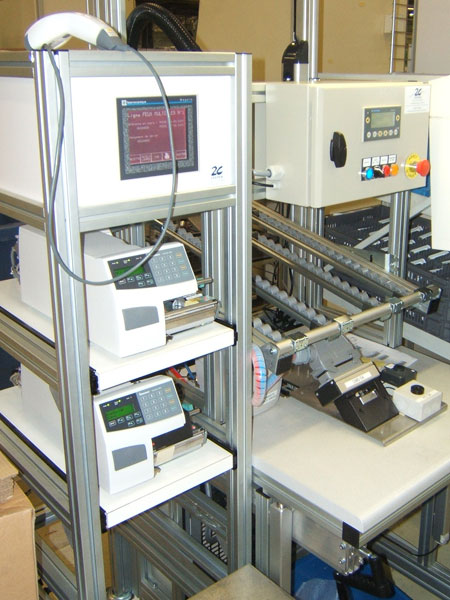 Réalisation d'un ensemble de postes fonctionnant en réseau avec un 'maître' qui assure la gestion de l'ensemble de la ligne. Chaque poste a la possibilité de fonctionner de manière autonome en cas de défaut du réseau Ethernet. Les dernières références utilisées sont archivées automatiquement dans l'automate.